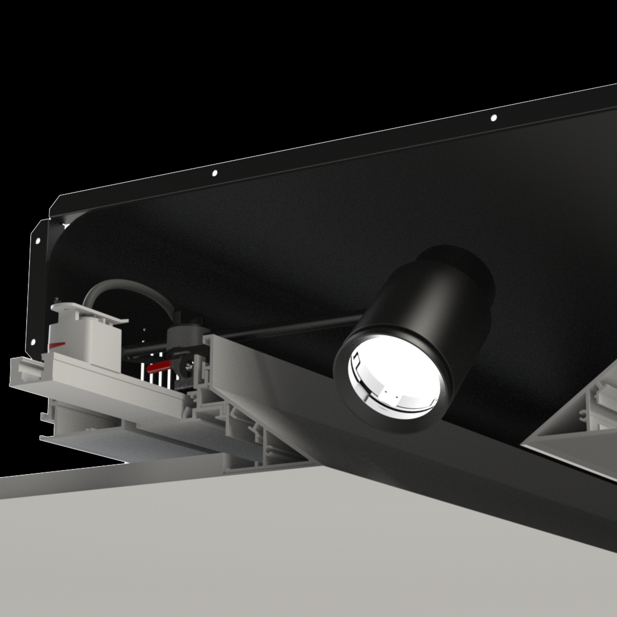 The wallwash complement for the S3Z, S3O and S3S the S3W provides even floor-to-ceiling wallwashing at 1:1 spacing for ceiling heights up to 18'. Its diminutive size, high output, clean aesthetic and articulating stem make it a powerful attribute for the H09 / H10 Slot systems.